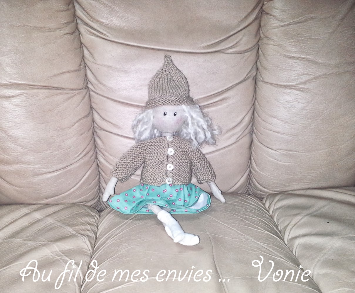 Comme je n'étais vraiment pas satisfaite , j'ai pris le découd vite et recommencé , c'est un peu mieux , je vous montre ! Je n'ai plus qu'à emballer mes petites créas et à les envoyer à ma très chère petite famille ... Le petit lutin est du voyage aussi !